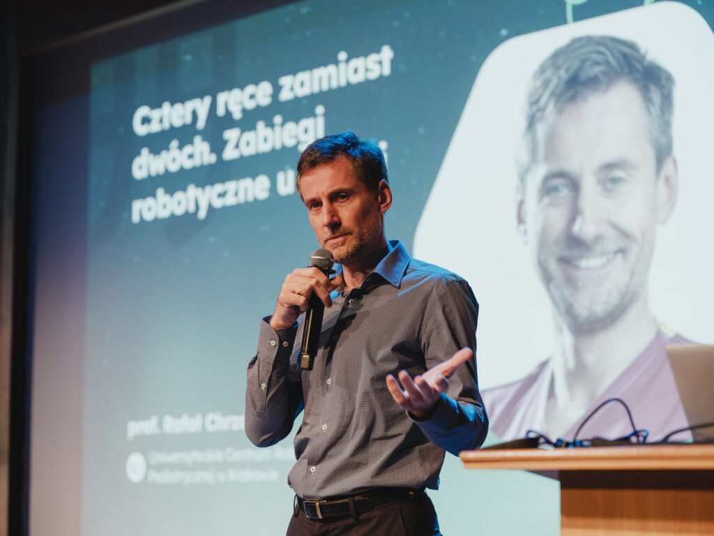 W tym roku do grona prelegentów dołączyło Uniwersyteckiego Centrum Robotyki Pediatrycznej (UCRP) z Uniwersyteckiego Szpitala Dziecięcego w Krakowie. UCRP przyciągnęło uwagę uczestników dzięki prezentacji prof. Rafała Chrzana, specjalisty w dziedzinie chirurgii dziecięcej, który wygłosił wykład pt. „Cztery ręce zamiast dwóch. Zabiegi robotyczne u dzieci”. Jego wystąpienie wprowadziło słuchaczy w świat chirurgii robotycznej, która – choć zyskuje na popularności – wciąż dla wielu jest obszarem pełnym nieznanych możliwości i wyzwań.